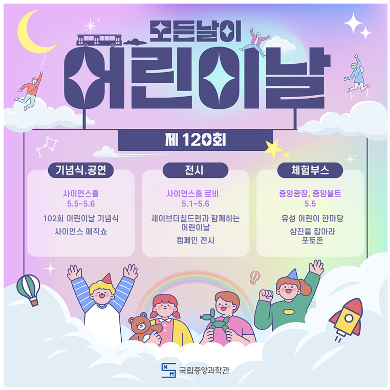 ✅ 102회 어린이날을 맞아 국립중앙과학관이 준비한 다양한 행사에 참여해 보세요.