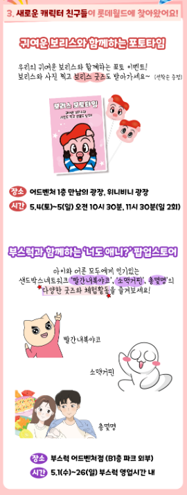 어린이날을 맞이하여 다양한 이벤트가 준비되어 있습니다.