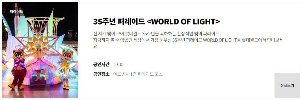 ✅  전 세계 빛이 모여 롯데월드 35주년을 축하하는 환상적인 빛의 퍼레이드가 펼쳐집니다.